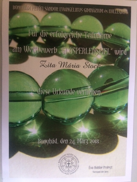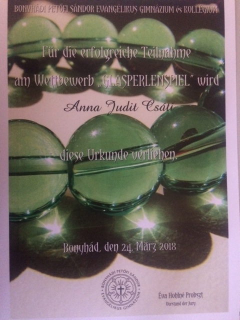 A "Glasperlenspiel" német nyelvi, országismereti és kultúrtörténeti verseny országos verseny döntőjén