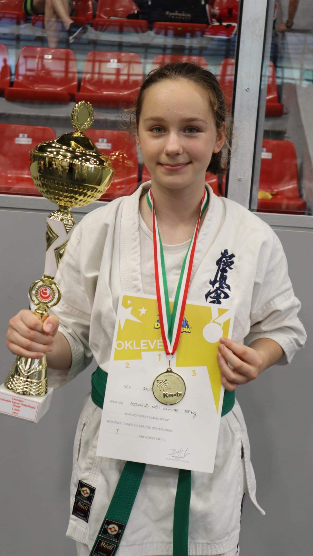 Újabb szép sikert ért el Reichert Jázmin 6.a osztályos tanulónk. Debrecenben az Országos Kyokushin Karate Diákolimpián 1. helyezést ért el. Jázmin idén második alkalommal szerzett Diákolimpián aranyérmet karate sportág különböző szakágaiban. Testnevelője Gerlaki Krisztina tanárnő.