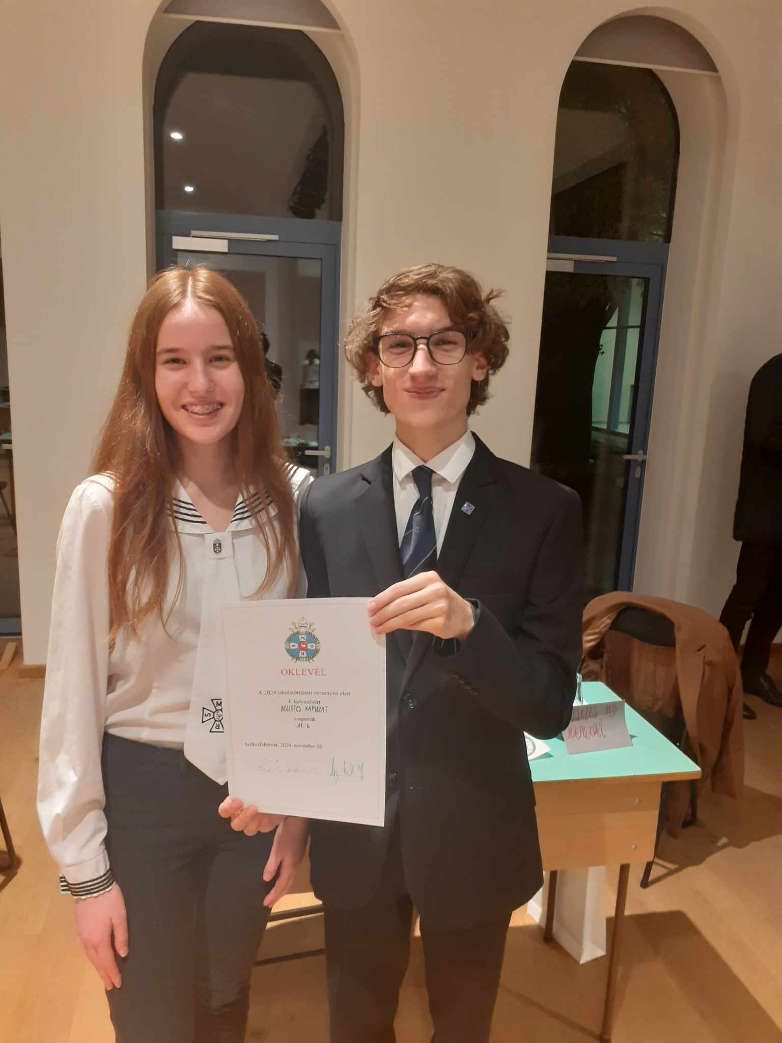 1. helyezett a11. b osztály Bélletes kapuzat csapata: Tóth Johanna, Tóth András, Bakos Luca