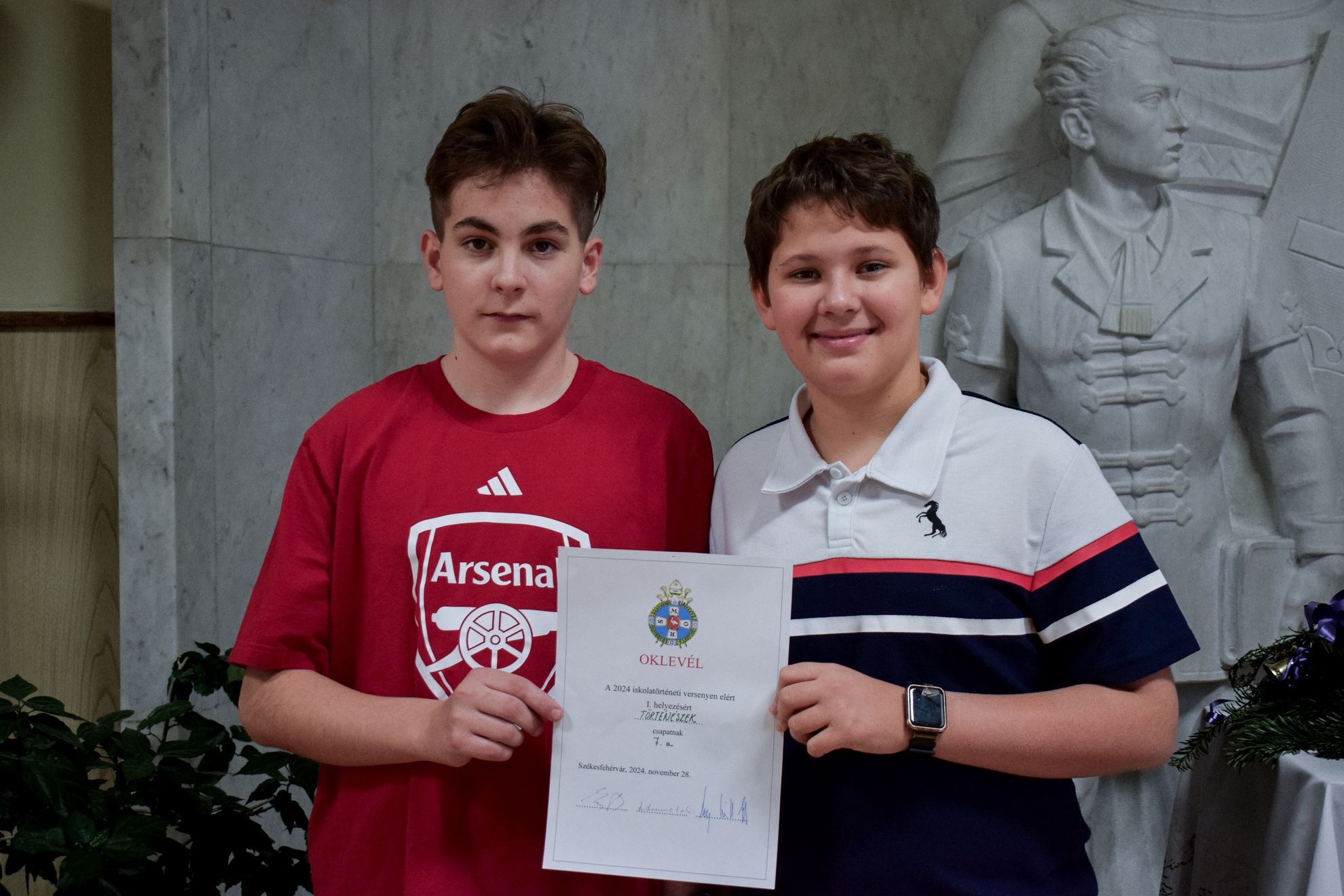 1. helyezett a 7. a osztály Történészek csapata: Both Bendegúz, Sütöri Ákos, Solymár Botond
