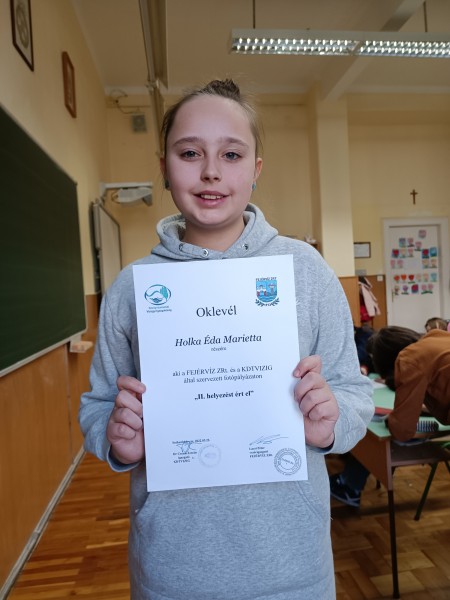 Fotópályázat a vízről Holka Éda 5. osztályos tanuló a Fejérvíz fotópályázatán 2. helyezést ért el. A pályázatot a víz világnapja alkalmából írták ki. Gratulálunk! 2022.03.26
