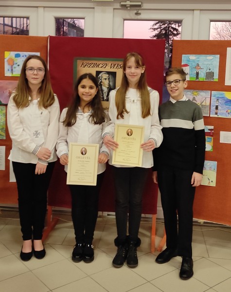 A Kazinczy Szép magyar beszéd verseny területi fordulójának résztvevői iskolánkból Tanárki Franciska, Borbély Réka, Francsics Ajsa és Gyói Gergely voltak. Közülük Borbély Réka (6.a, felkészítő Hegyi Laura) ezüst-, Francsics Ajsa (7.b, felkészítő Farkasné Sárközi Éva) pedig bronzérmes lett a kategóriájában.