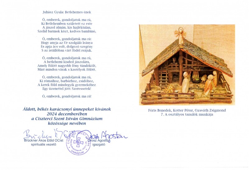 Áldott Karácsonyt! Áldott, békés karácsonyi ünnepeket kívánok a Ciszterci Szent István Gimnázium közössége nevében: Orosz Ágoston igazgató 2024.12.20