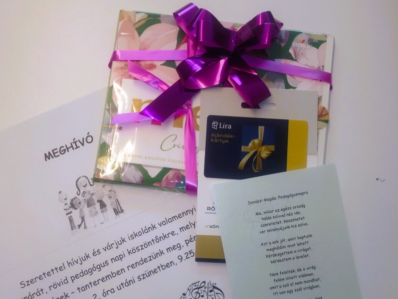 Ez a figyelmes, szeretetteljes gesztus mélyen megérintette a nevelőtestület tagjait. Köszönjük az 5.b osztály tanulóinak és szüleiknek ezt a szívből jövő, őszinte köszöntést, amely megerősítette bennünk: munkánk nemcsak értékes, hanem valóban értelmet adó hivatás.
