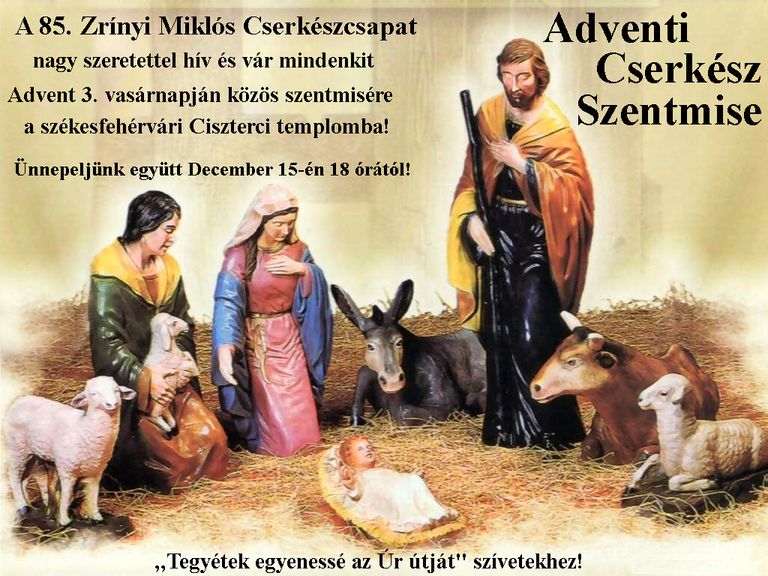 Adventi Cserkész szentmise A 85. Zrínyi Miklós Cserkészcsapat nagy szeretettel hív és vár mindenkit Advent 3. vasárnapján közös szetnmisére a Ciszterci templomba. December 15-én 18 órától. 2013.12.11