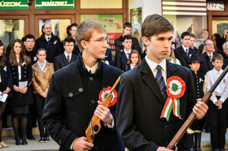 A Fekete Sas szálló előtt tartottuk ünnepi megemlékezésünket az 1848-49-es forradalom és szabadságharc évfordulóján. Idén a 10. b és 5. b osztály, valamint az alkalmi zenei együttesünk hozta közel az akkor történteket a diáktársakhoz, tanárokhoz és járókelőkhöz. Diákjainknak megható és emlékezetes műsort sikerült összeállítaniuk Lacziné Kiss Mária magyartanár, Szénásy Zoltán osztályfőnök, Dr. Sziráki Szilvia történelem tanár, valamint a zenészeket, énekeseket összefogó Molnárné Rádl Margit tanárnő és Moharos Sándor tanár úr segítségével.