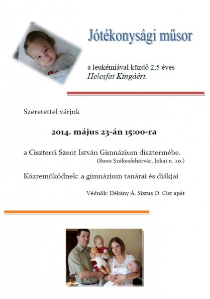 a leukémiával küzdő 2,5 éves Helesfai Kingáért.