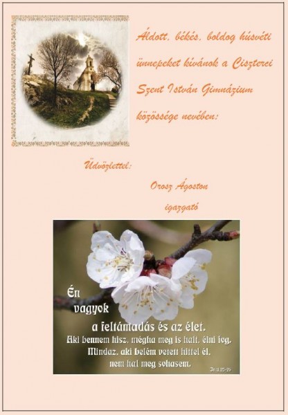 Áldott Húsvéti Ünnepeket! Áldott, békés, boldog húsvéti ünnepeket kíván a Ciszterci Szent István Gimnázium. 2022.04.14