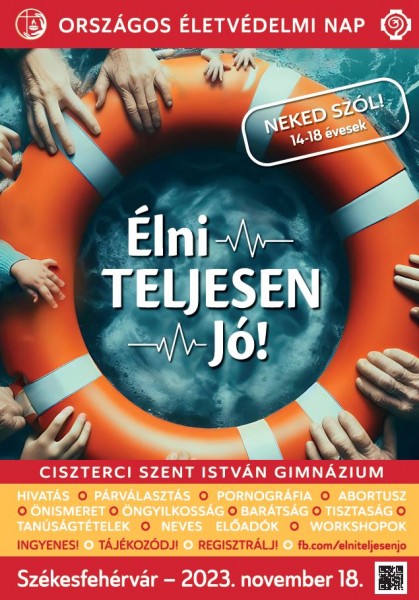 A Székesfehérvári Egyházmegye Élni TELJESEN Jó címmel országos életvédelmi napra hív mindenkit korosztálytól és életállapottól függetlenül! A program 2023. november 18-án, szombaton kerül megrendezésre Székesfehérvár belvárosában. Neves előadók részvételével kerekasztal-beszélgetések, tanúságtételek, workshopok várják a felnőtteket és középiskolásokat, míg az általános iskolásoknak a cserkészek készülnek programmal, a legkisebbeket pedig kézműveskedés, bábelőadás, mese, játék várja.