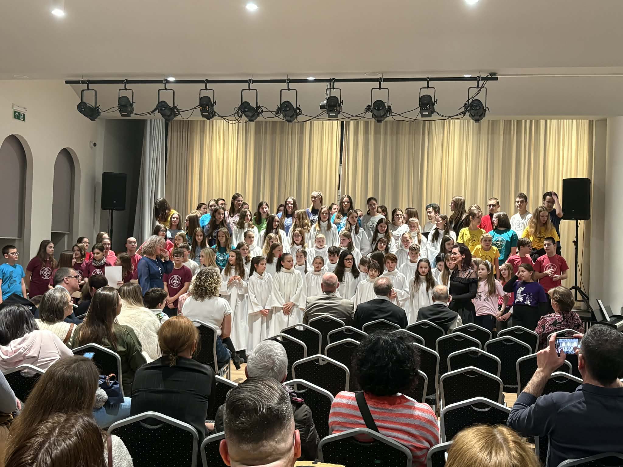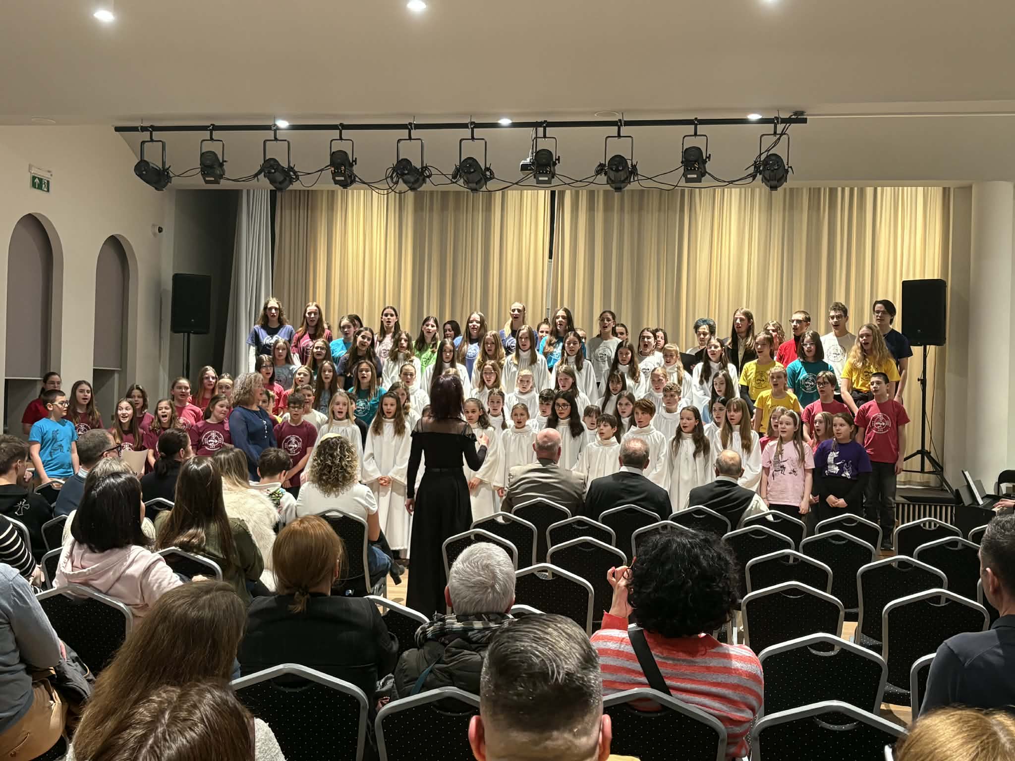 A kóruséneklés szépsége abban rejlik, hogy sok különálló hang egyetlen lélegző egységgé válik. Ezt élhette át a hallgatóság és az előadók maguk is, amikor a közös művek ragyogóan megszólaltak a teremben. Mind a gyerekkarok, mind a vegyeskarral közös egyesített kórus remekül szerepeltek, zúgott a vastaps a díszteremben.