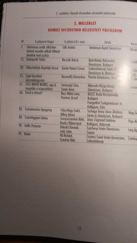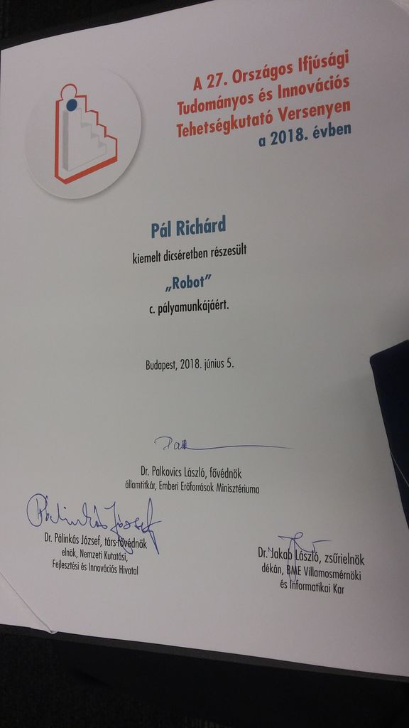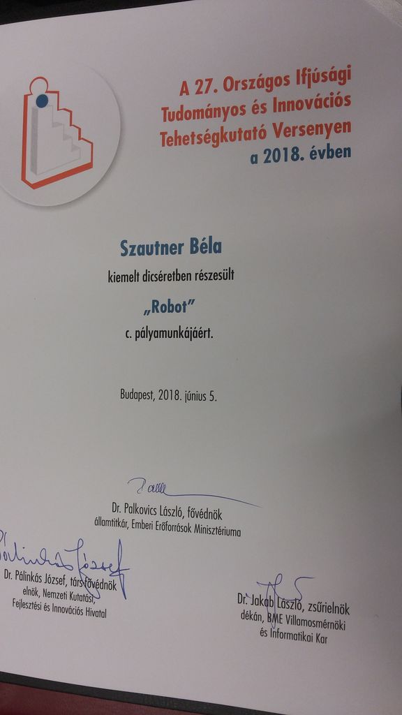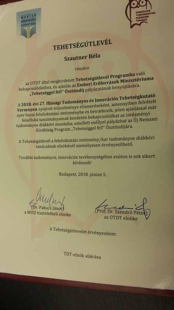 Pál Richárd és Szautner Béla 9.A osztályos tanulók kiemelt dicséretben részesültek a 27. Országos Ifjúsági Tudományos és Innovációs Tehetségkutató verseny végeredményének hirdetésekor.
